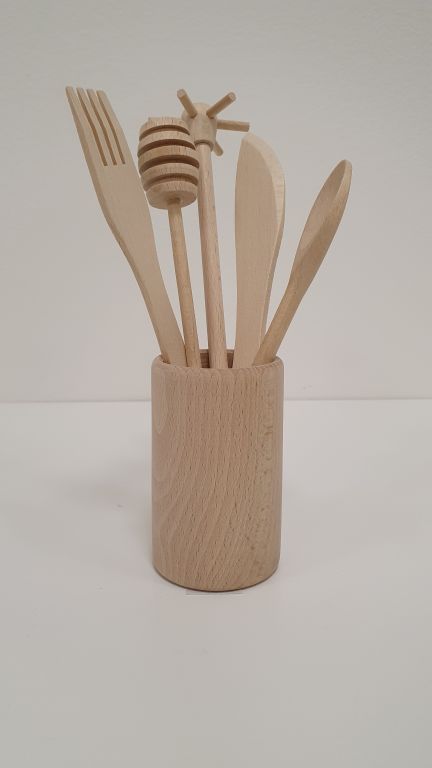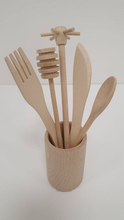 Solidna konstrukcja i brak powłok chemicznych gwarantują bezpieczeństwo i trwałość. Bukowe drewno jest delikatne dla naczyń, a jednocześnie wystarczająco mocne do intensywnego użytkowania. Łatwa pielęgnacja i klasyczny design sprawiają, że zestaw posłuży przez lata. Wyprodukowany w Czechach.