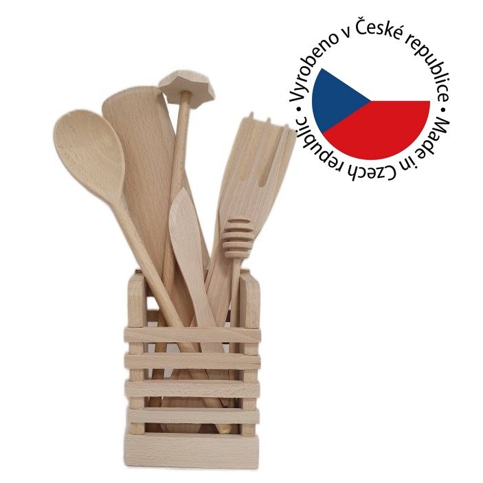 Dodaj do swojej kuchni odrobinę natury dzięki temu zestawowi drewnianych przyborów kuchennych. Naturalny buk zachwyca wyglądem i sprawia, że gotowanie staje się przyjemnością. Praktyczny stojak pozwala utrzymać porządek i podkreśla styl Twojej kuchni.