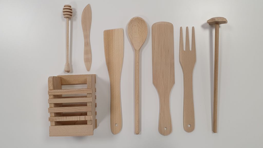 Naturalny zestaw kuchenny z buku, bez lakieru, idealny do każdej kuchni.