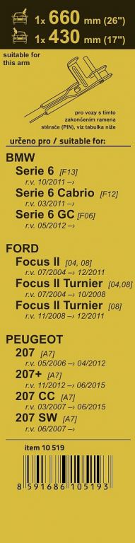 Długości wycieraczek oraz system mocowania wieszaków są dostosowane do wybranych samochodów (patrz tabela zastosowań). Wysokiej jakości elastyczny, płaski element zgarniający zapewnia równomierny docisk grafitowego pióra na całej jego długości, co zapobiega rozmazywaniu się brudu i smugom.