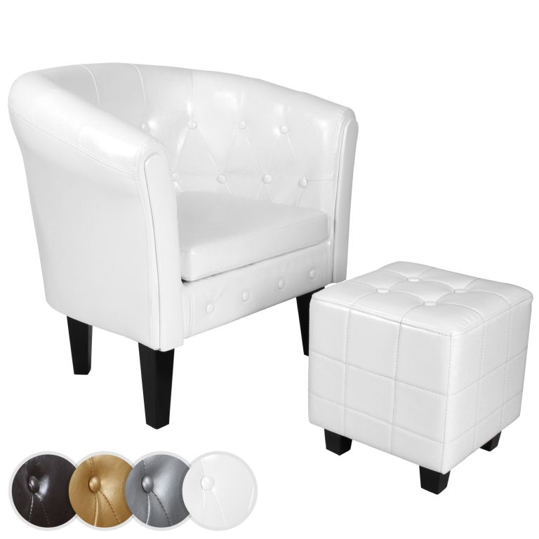 Zestaw fotel i pufa z ekoskóry, biały, do salonu i biura
