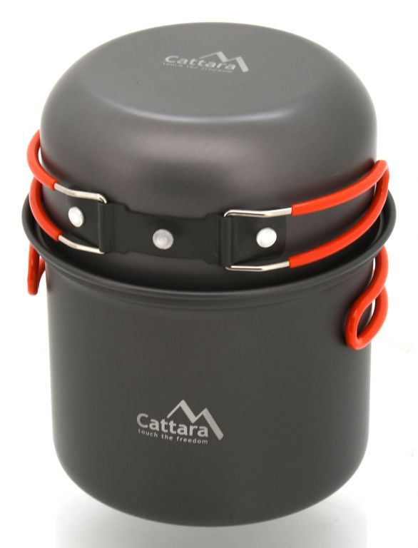 Ukazać szczegółowy opisZestaw naczyń kuchennych z anodyzowanego aluminium na zewnątrz.