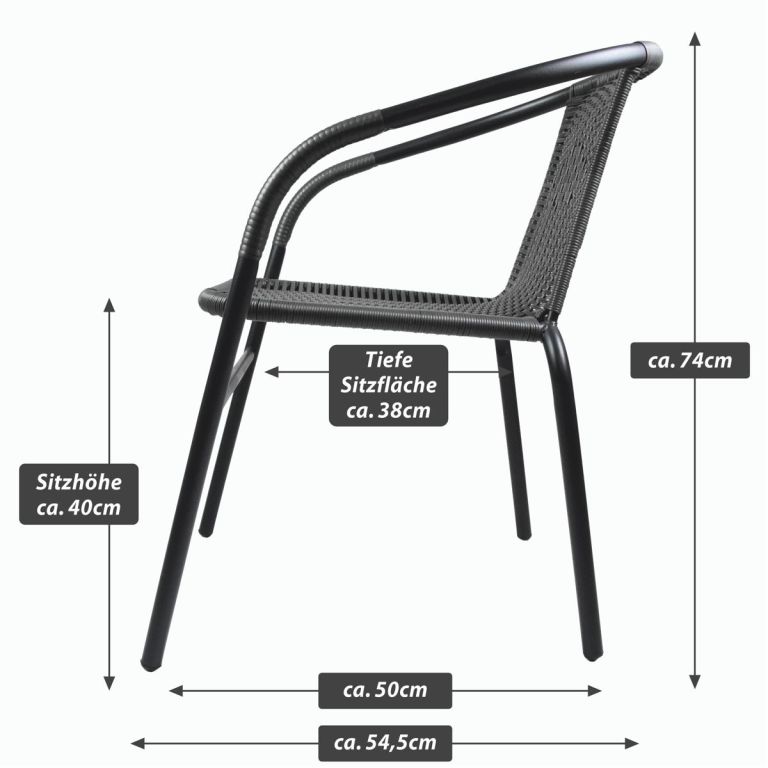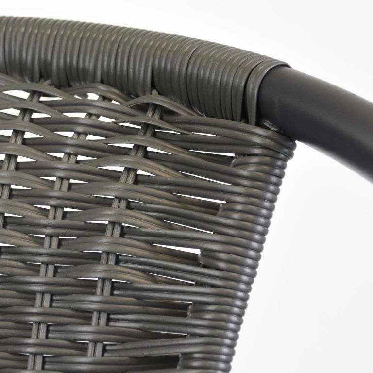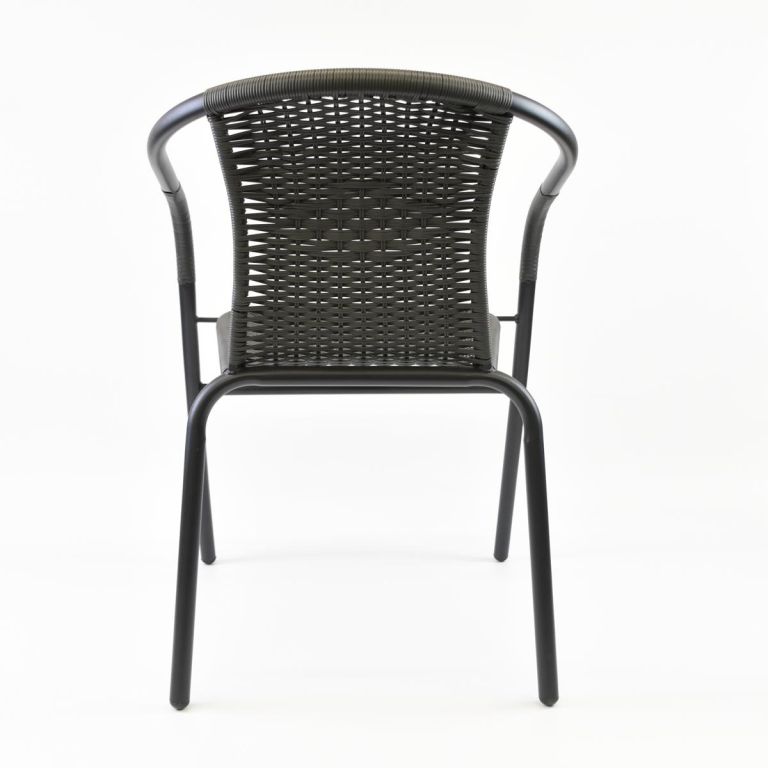 Aby uzyskać prawdziwie śródziemnomorską atmosferę w stylu francuskich kawiarni i bistro, krzesło bistro jest lekkim i gustownym elementem do siedzenia. Możesz ustawić kilka krzeseł tego typu jedno na drugim, aby zaoszczędzić dużo miejsca, jeśli chcesz odłożyć krzesło i przechowywać je w miesiącach zimowych. Materiały użyte do produkcji tego krzesła są łatwe w utrzymaniu, odporne na warunki pogodowe i nie wymagają specjalnego traktowania. Lekkie, ale wytrzymałe krzesło do sztaplowania z wygodnym rattanowym siedziskiem jest bardzo wygodne. Stalowa konstrukcja jest malowana proszkowo, a nogi mają gumowe nakładki, które zapobiegają ślizganiu się, tłumią hałas podczas przesuwania i chronią podłogę. Polirattan jest wykonany z tworzywa sztucznego, jest odporny na rozdarcia i ciekawie tkany. Połącz te krzesła sztaplowane z pasującymi małymi okrągłymi stolikami bistro dostępnymi w naszym sklepie. W ten sposób można skonfigurować własny zestaw bistro.