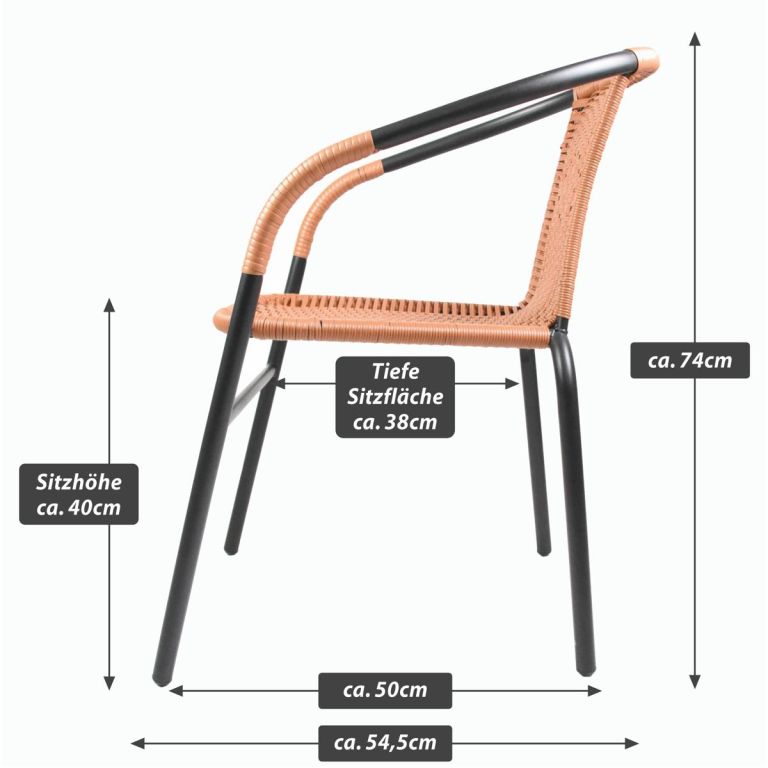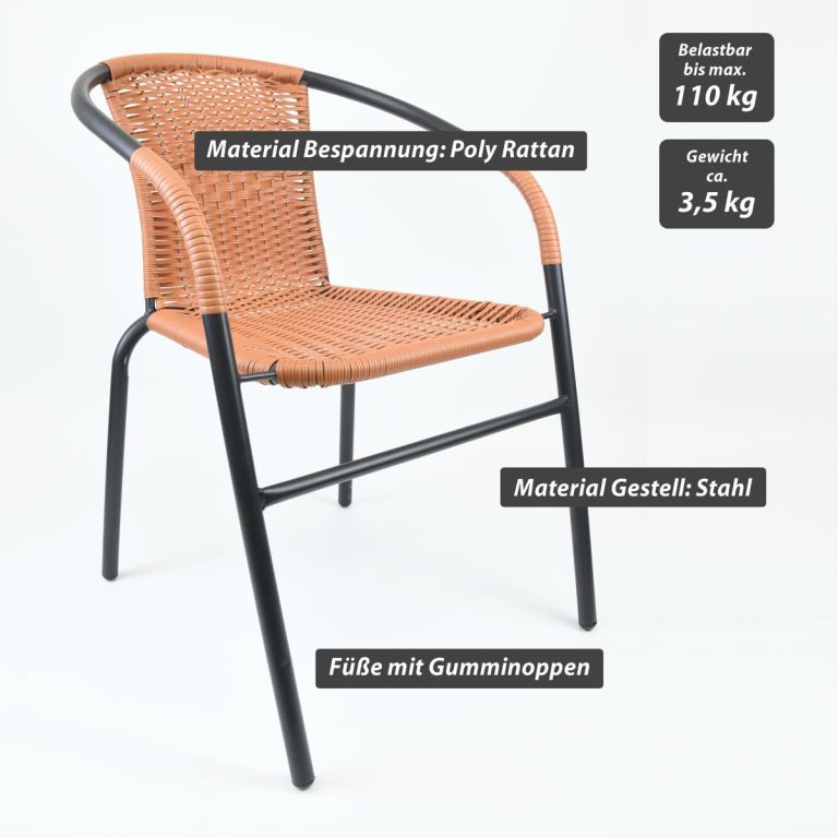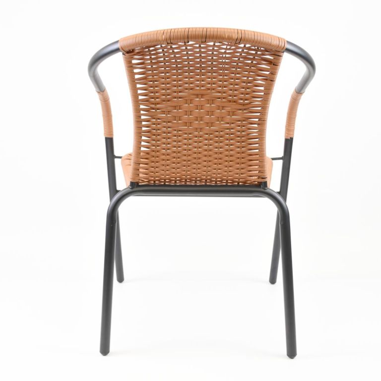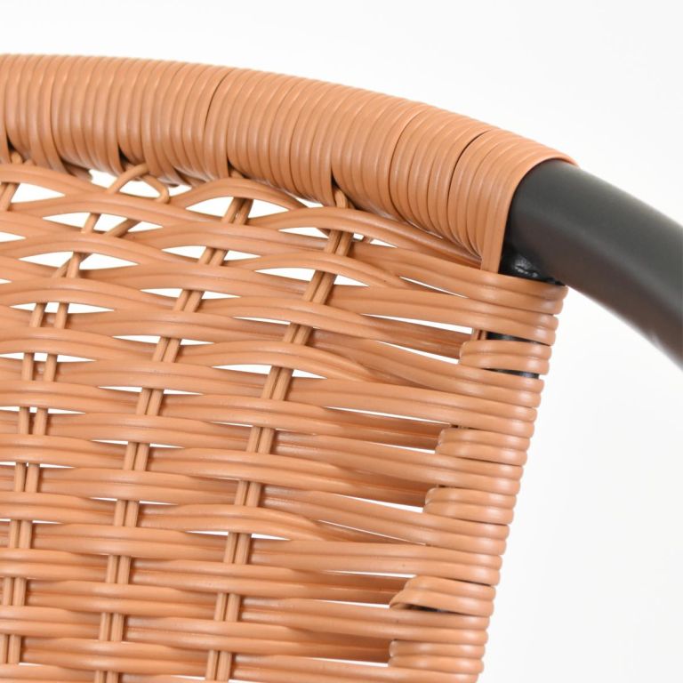 Krzesła bistro, które idealnie wpasują się w klimat śródziemnomorskich kawiarni i bistro, to lekkie i gustowne siedziska. Możesz ustawić kilka krzeseł tego typu jedno na drugim, oszczędzając w ten sposób sporo miejsca, jeśli zechcesz odłożyć krzesło i przechować je na okres zimowy. Materiały wykorzystane do produkcji tego krzesła są łatwe w utrzymaniu, odporne na warunki atmosferyczne i nie wymagają specjalnego traktowania. Lekkie, a jednocześnie wytrzymałe krzesło z wygodnym siedziskiem z rattanu, które można sztaplować, jest bardzo wygodne. Stalowa konstrukcja jest malowana proszkowo, a nogi mają gumowe nakładki, które zapobiegają ślizganiu się, tłumią hałas podczas przesuwania i chronią podłogę. Polirattan jest wykonany z tworzywa sztucznego, jest odporny na rozdarcia i ma ciekawy splot. Połącz te krzesła sztaplowane z pasującymi małymi okrągłymi stolikami bistro dostępnymi w naszym sklepie. W ten sposób możesz skonfigurować swój własny zestaw bistro.