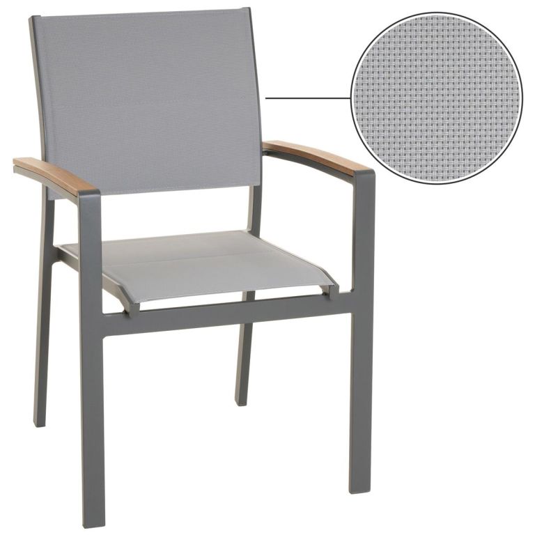 Wygoda i praktyczność dzięki sztaplowanym krzesłom z aluminiową ramą i antracytowym pokryciem. Trwałe, eleganckie i idealne do wnętrz i na zewnątrz.