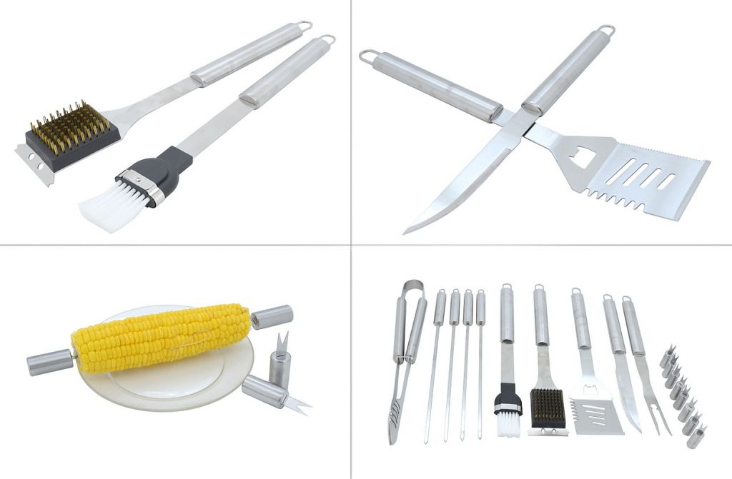 Zestaw zawiera wszystkie narzędzia do przygotowywania różnorodnych potraw, a także późniejszą konserwację grilla. Ponadto wszystkie narzędzia wykonane są ze stali nierdzewnej.