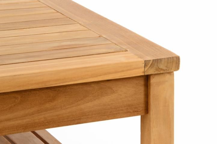 Drewno teakowe jest bardzo odporne na warunki atmosferyczne i dlatego nadaje się do użytku na zewnątrz. Nietraktowane drewno tekowe po pewnym czasie zyska słynną srebrnoszarą patynę.