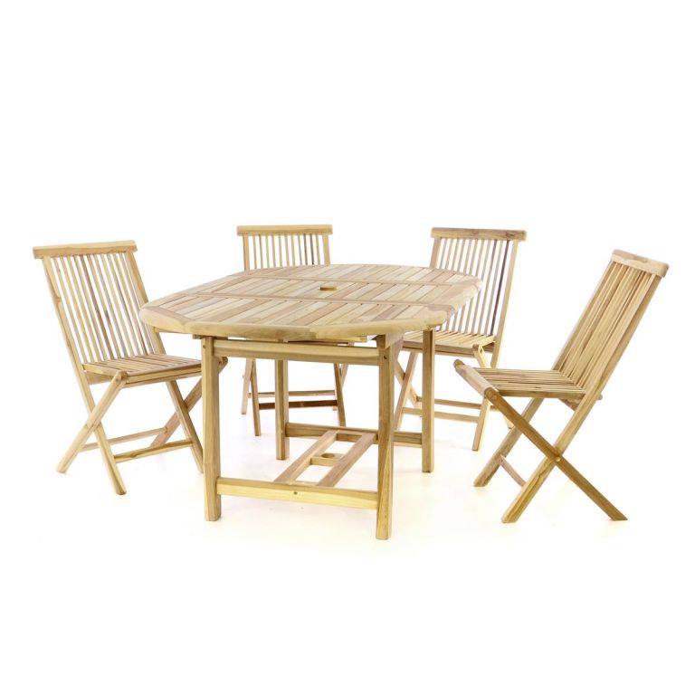 Zestaw ogrodowy DIVERO z drewna tekowego - stół + 4 krzesła składane