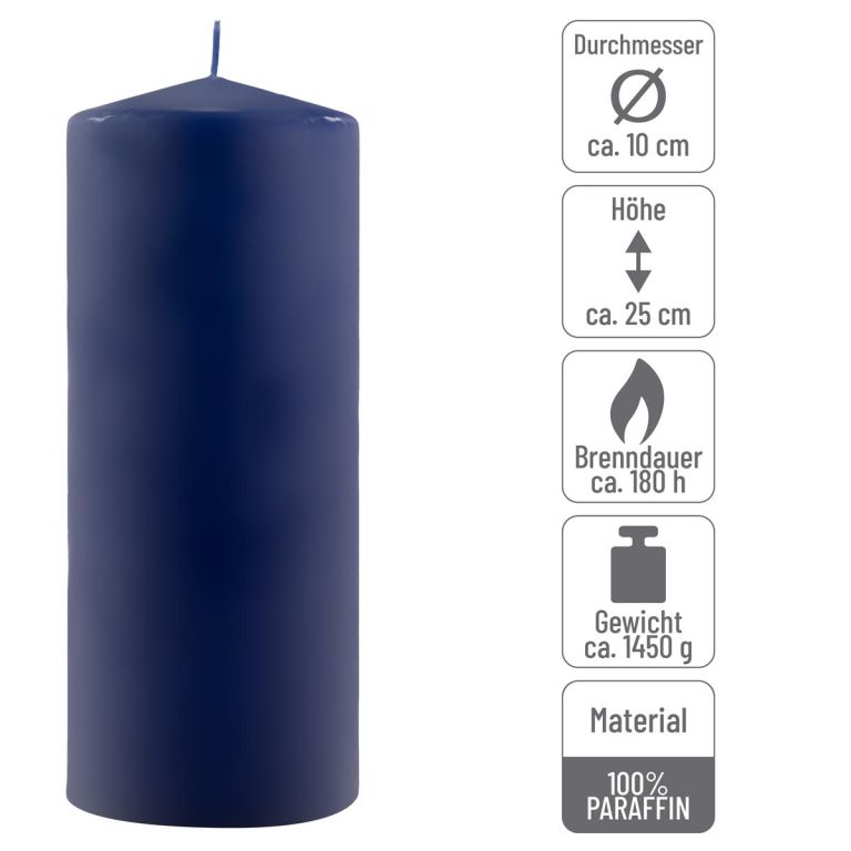 Zestaw słupkowych świec, 25 cm, Ø 10 cm, niebieski, 2 sztuki