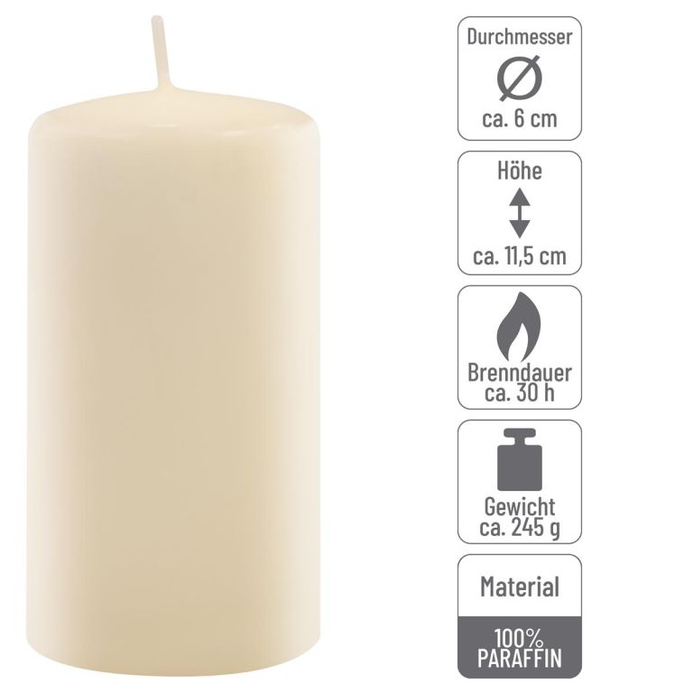 Zestaw świec filarowych, 11,5 cm, Ø 6 cm, kremowe, 18 szt.