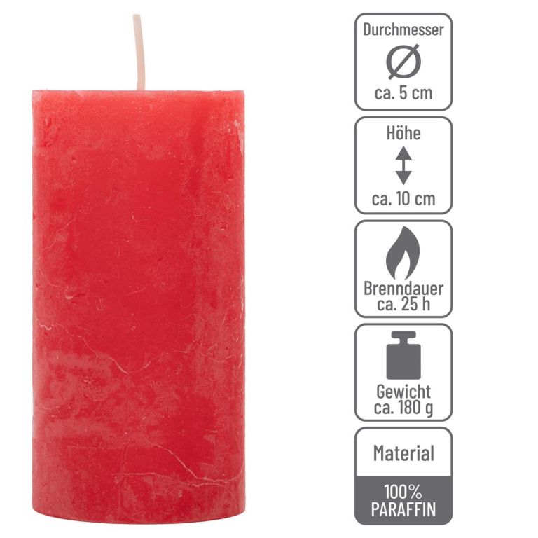 Zestaw świec rustykalnych, 10 cm, Ø 5 cm, czerwony, 16 szt.