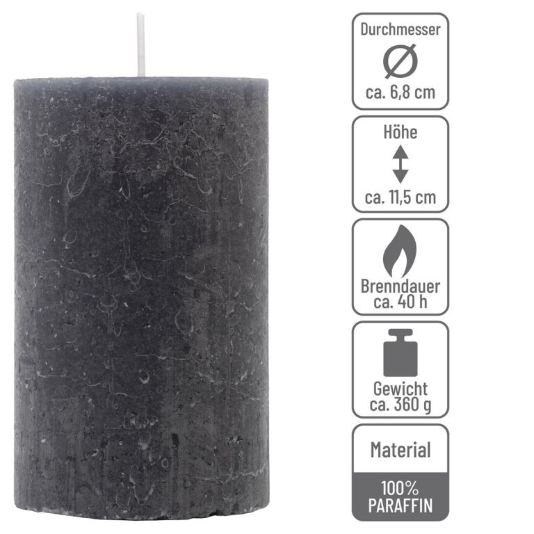 Zestaw świec rustykalnych, 11,5 cm, Ø 6,8 cm, antracyt, 12 s