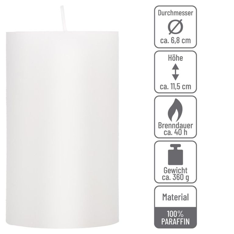 Zestaw świec rustykalnych, 11,5 cm, Ø 6,8 cm, biały, 12 szt.
