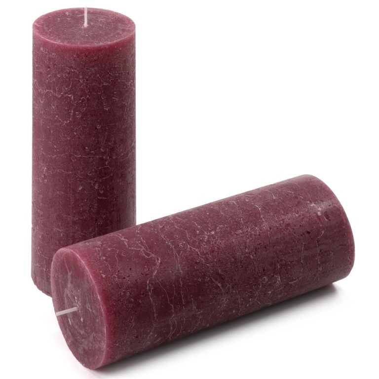 Zestaw świec rustykalnych, 20 cm, Ø 7,5 cm, bordowy, 2 szt.