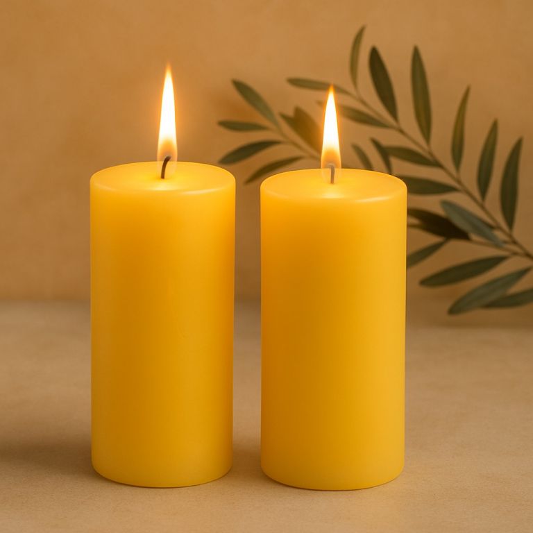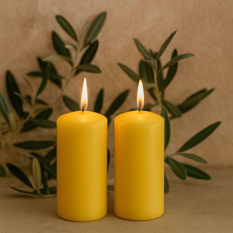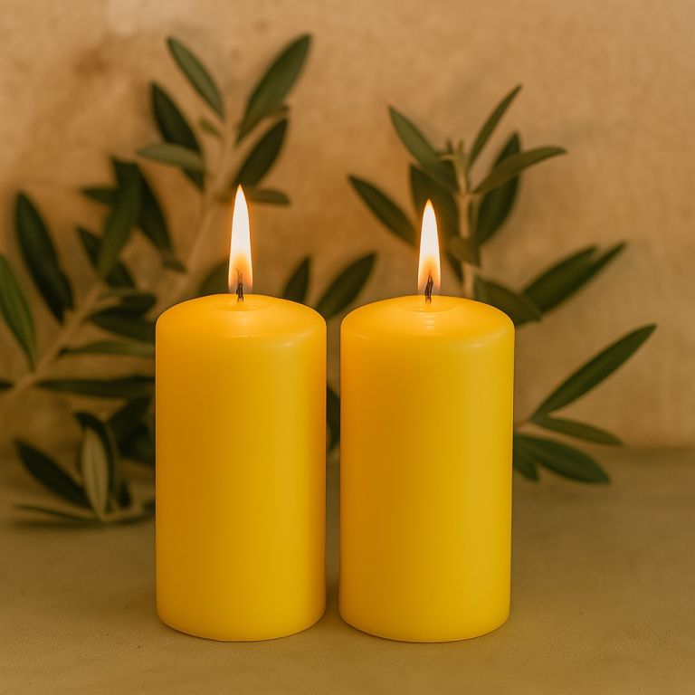 Zestaw świec słupkowych, 15 cm, Ø 7,5 cm, żółty, 2 sztuki.