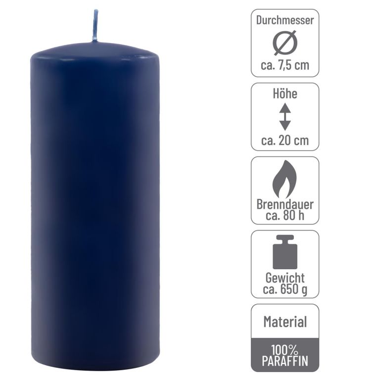 Zestaw świec słupkowych, 20 cm, Ø 7,5 cm, niebieski, 2 szt