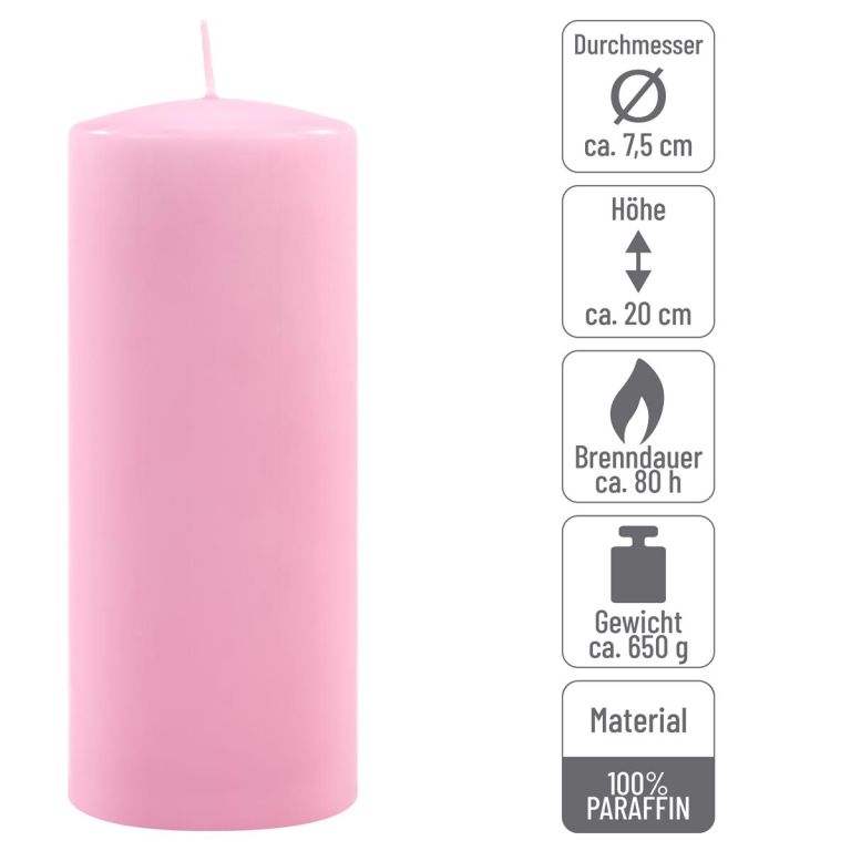Zestaw świec słupkowych, 20 cm, Ø 7,5 cm, różowy, 4 szt