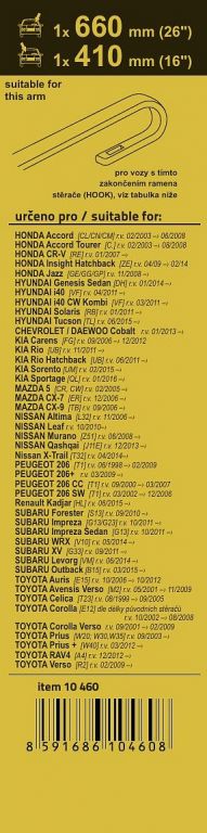 Długości wycieraczek oraz system mocowania wieszaków dostosowane są do wybranych aut. Wysokiej jakości elastyczny, płaski element zgarniający zapewnia równomierny docisk grafitowego pióra na całej jego długości, co zapobiega rozmazywaniu się brudu i smugom.