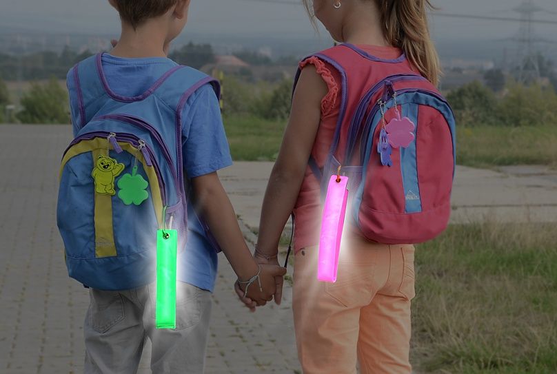 Praktyczny odblaskowy brelok z karabińczykiem, poprawia widoczność pieszych.