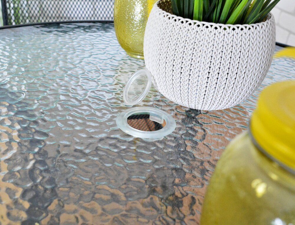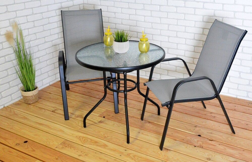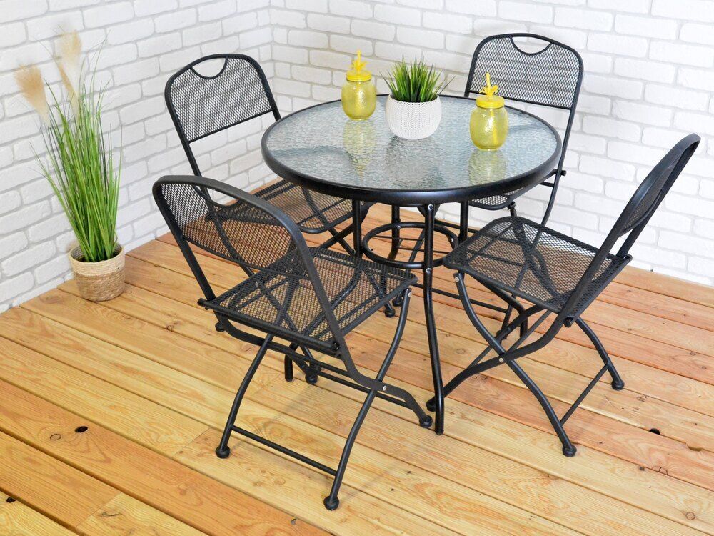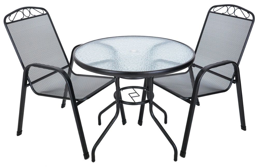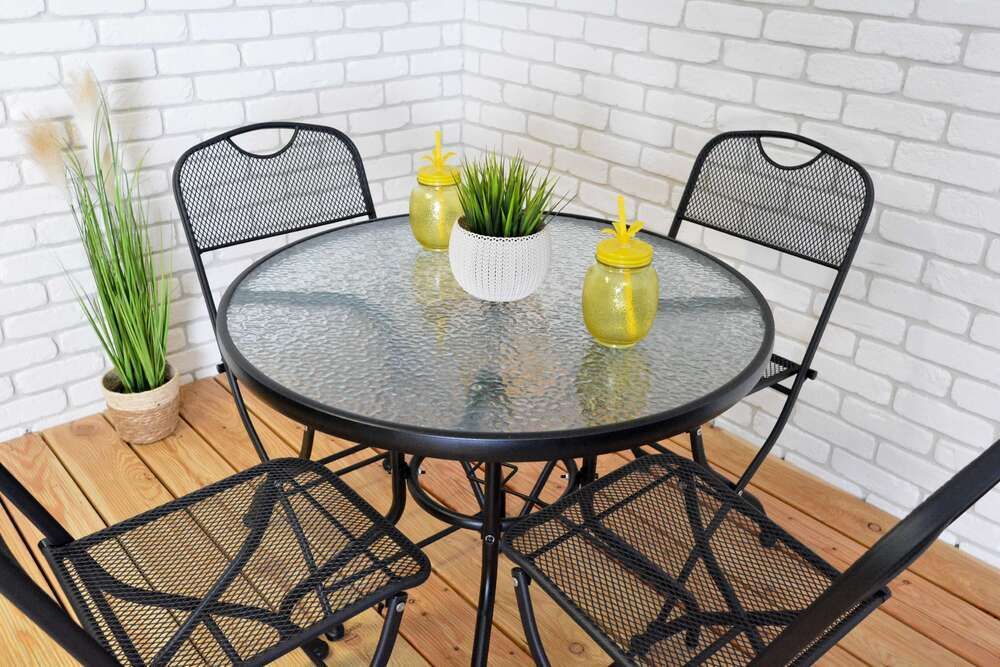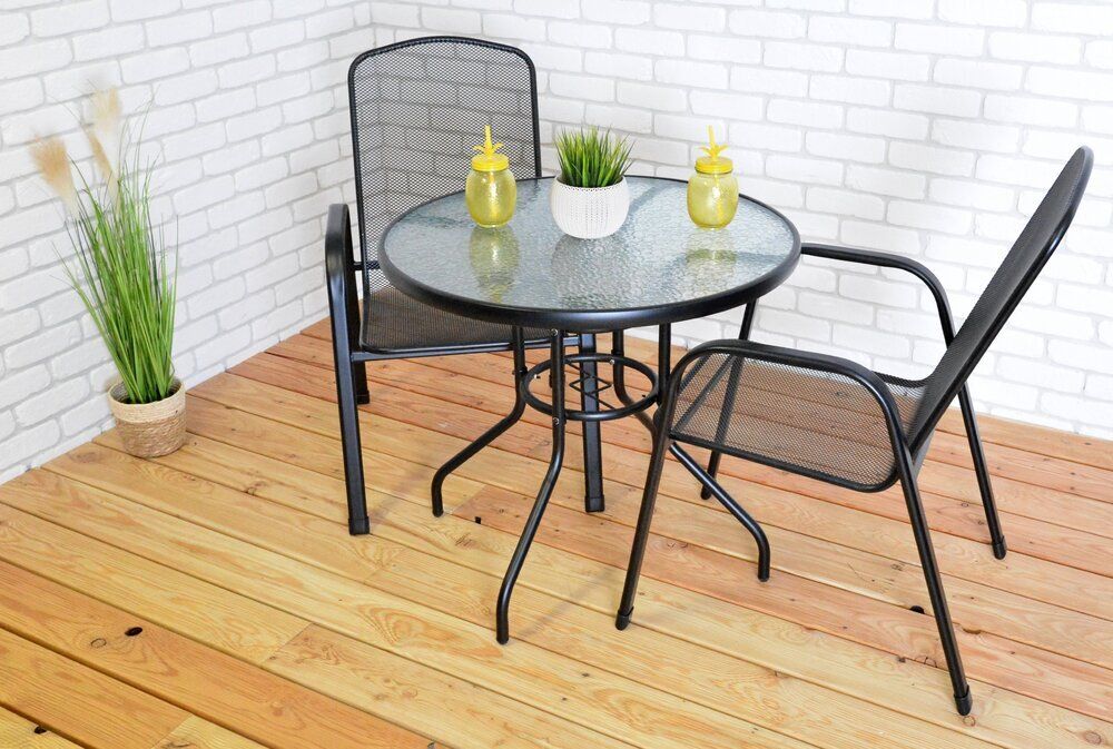 ZWMT Stół ogrodowy 80 cm metalowy ze szklanym blatem